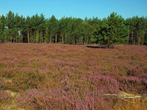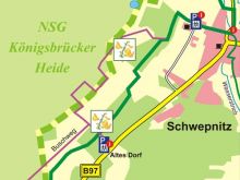 Im Osten des Schutzgebietes zwischen Schmorkau und Schwepnitz grenzen das Naturschutzgebiet und das Naturerlebnisgebiet aneinander. In der Pflegezone des NSG werden die Trockenen Heiden – riesige Flächen mit Heidekraut – erhalten. Erst nördlich davon beginnt die „Wildnis“.