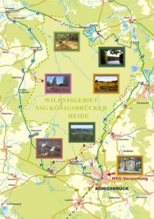 anderen angrenzenden Orte, die den Heidedörfern ähneln, die einst dem Truppenübungsplatz Königsbrück weichen mussten. Dort erwarten Sie Informationsstellen zum Naturschutzgebiet. Gaststätten und Pensionen